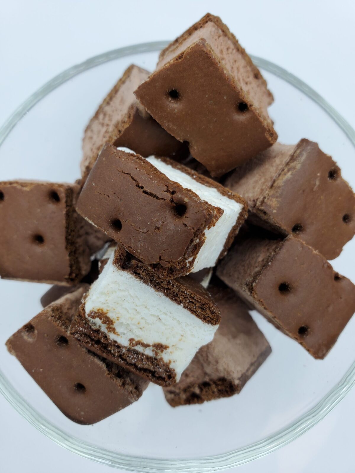 Freeze-dried ice cream sandwich bites. Bite-sized ice cream sandwiches that are perfect for snacking. Light and delicious they are perfect on the go. They also make a great tea-time/coffee-time treat.